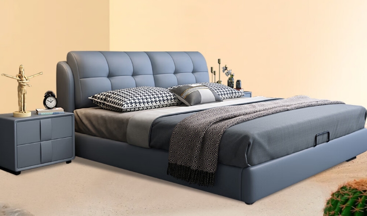 百冠环球床 真皮床卧室双人床现代简约 主卧实木软靠高箱皮床家具