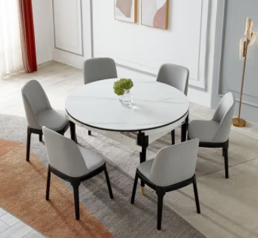全友家居 轻奢风餐桌椅子组合多功能可伸缩家用小户型岩板餐桌DW1029